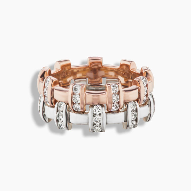 The Queen Stack Ring is everything you've been looking for to add to your hand party. Wear alone or stack them up in classic interlocking style for the Queen in us all. Your fingers will thank you.