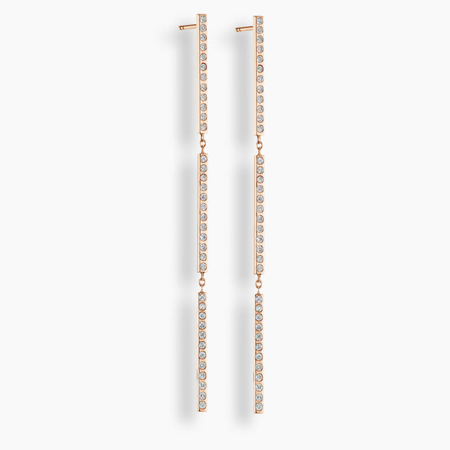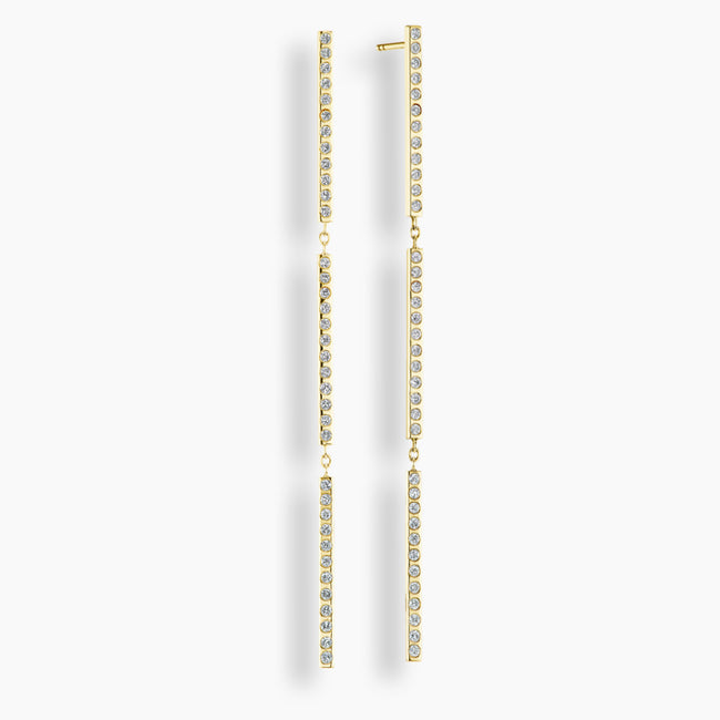 Three times the sparkle with these fabulous drop earrings, because we are all triple threats. seventy-two hand-set flawless stones in 6 in of solid, linked wire.